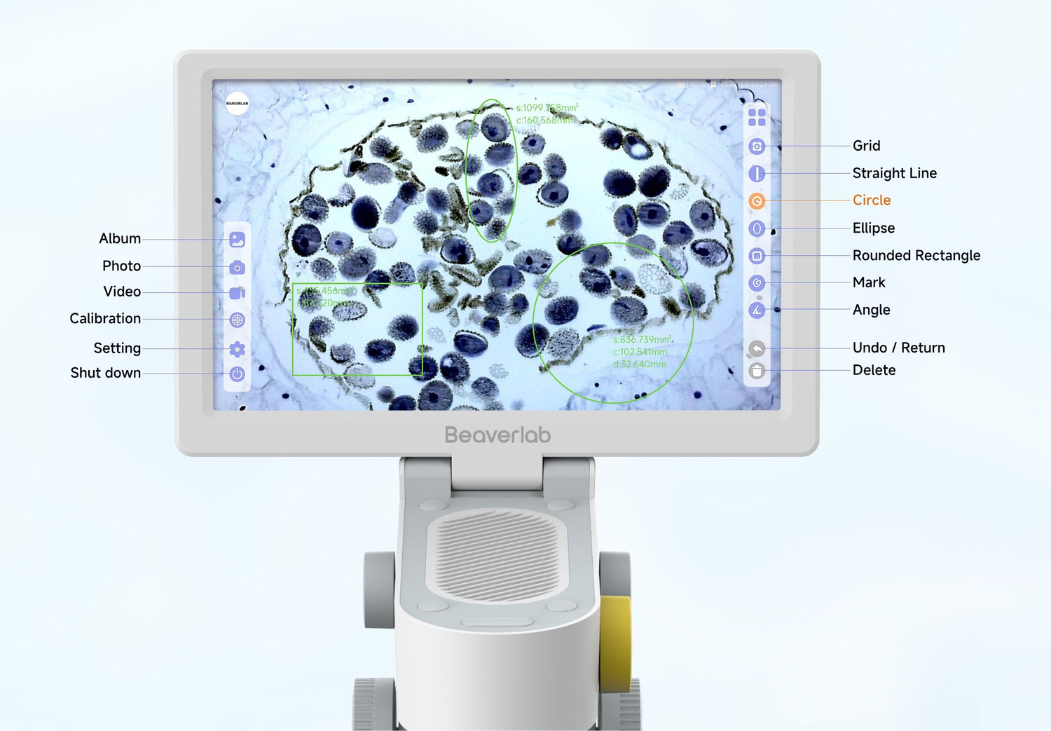 Darwin MX features a user-friendly UI interface, making the operation simple and intuitive. By tapping the edit buttons on the touchscreen, you can measure and annotate the observed image in real time without any complicated steps. With a high precision of up to 0.001m, you can measure tiny details, obtaining more accurate data.