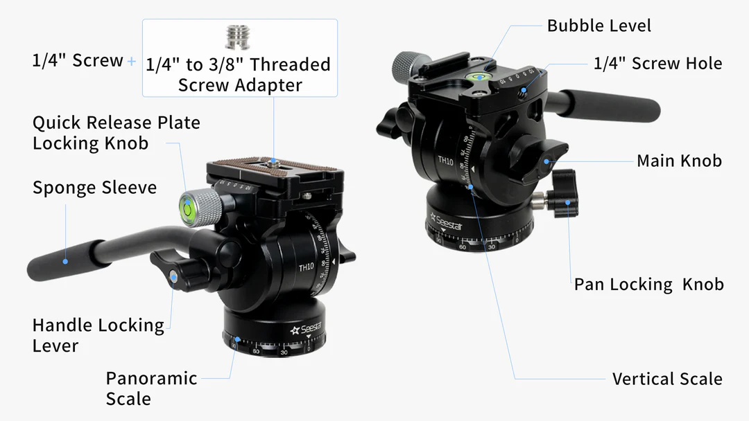 Made of durable full-metal construction, Seestar TH10 tripod head is compatible with most tripods and accessories on the market. It comes with a quick-release plate that supports both 3/8″ and 1/4″ screws, allowing for easy setup with a wide variety of devices.
